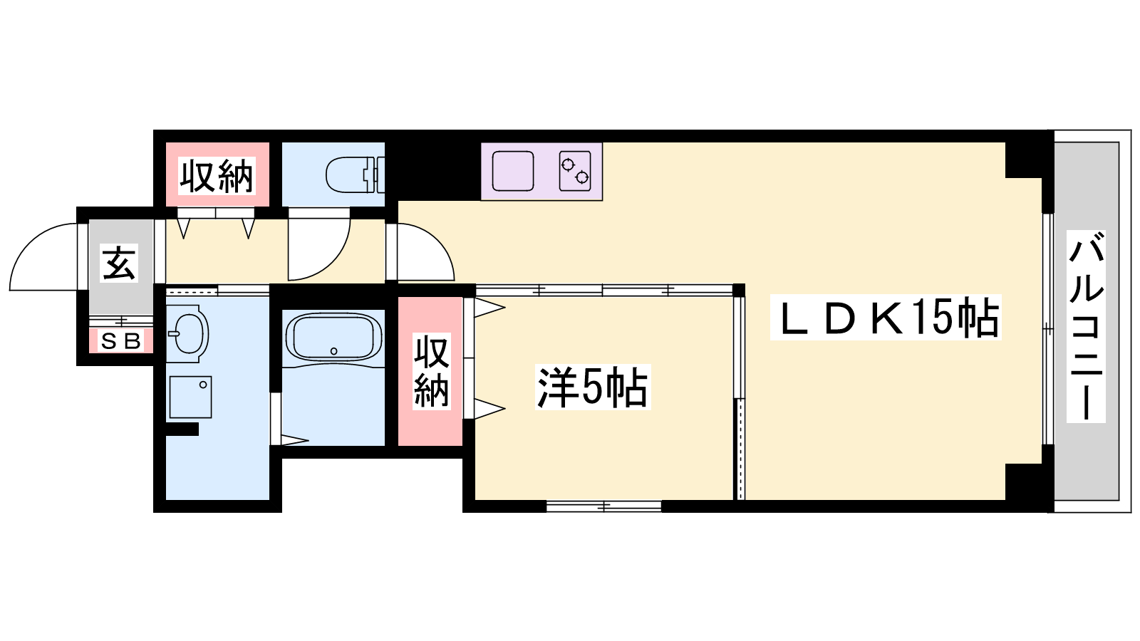 - LDK15帖、洋室5帖