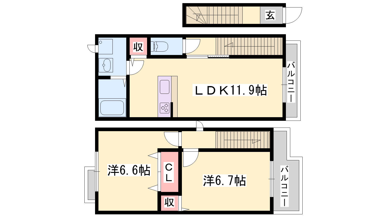 - LDK12帖、洋室6.6帖、洋室6.7帖