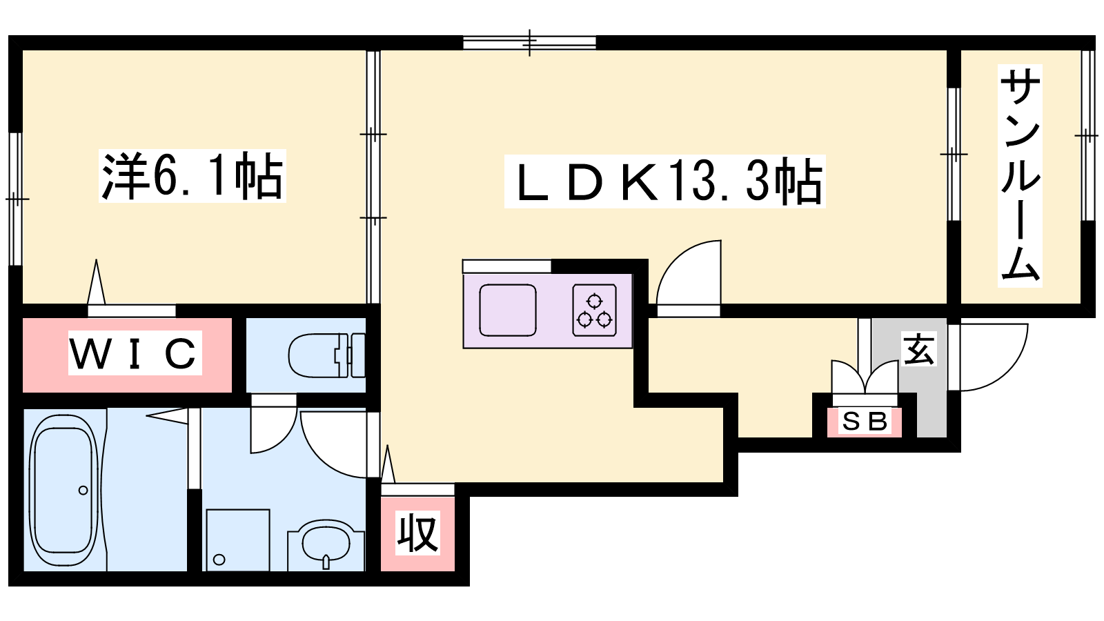 - LDK13.3帖、洋室6.1帖