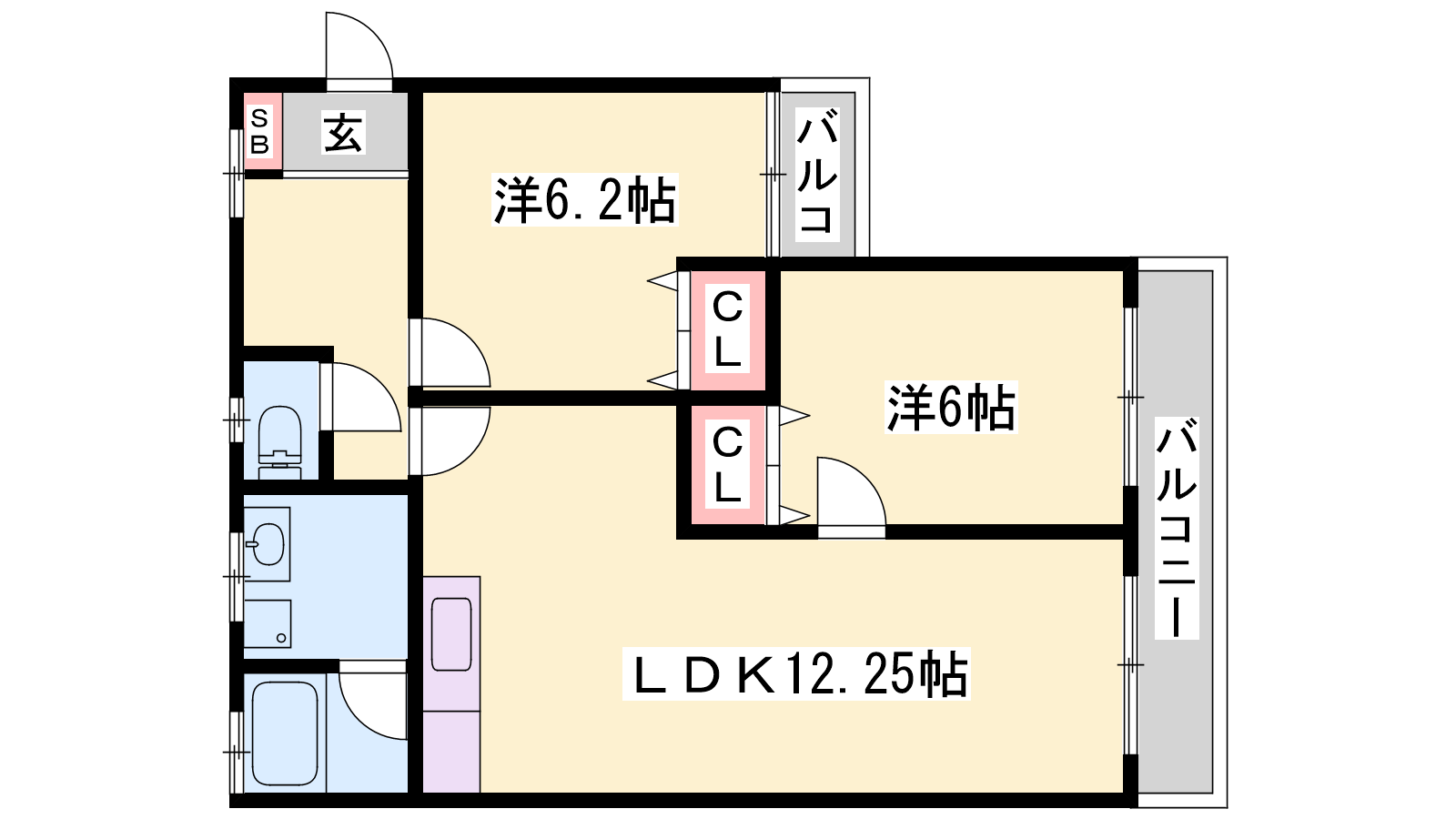 - LDK12.2帖、洋室6.2帖、洋室6帖