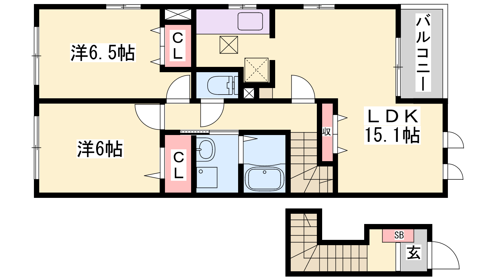 - LDK15.1帖、洋室6.5帖、洋室6帖