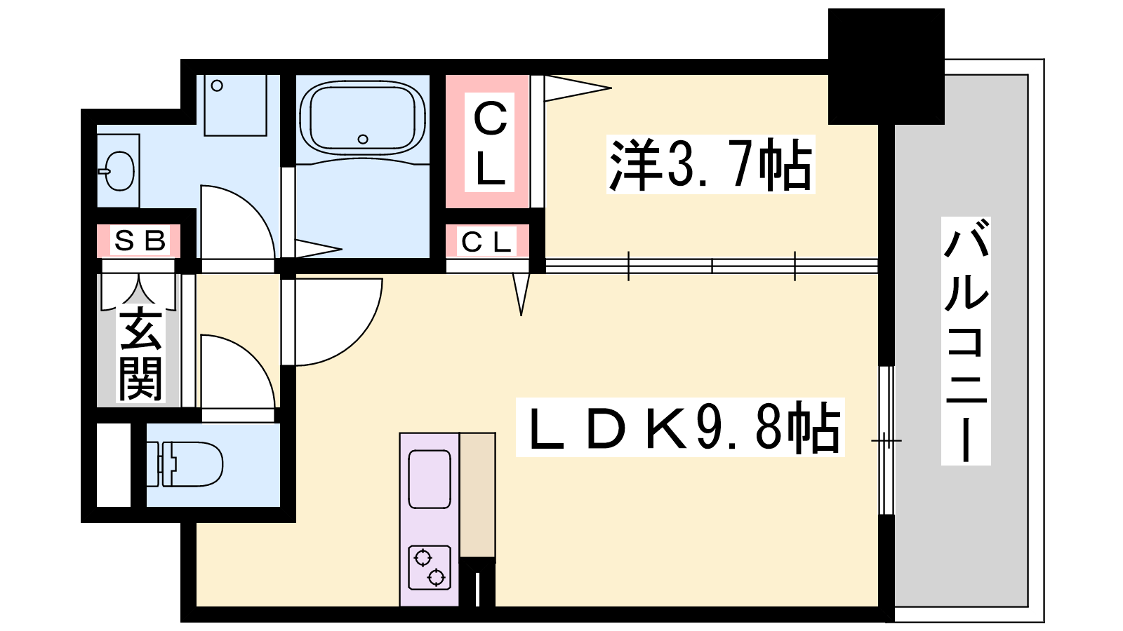 - LDK9.8帖、洋室3.7帖