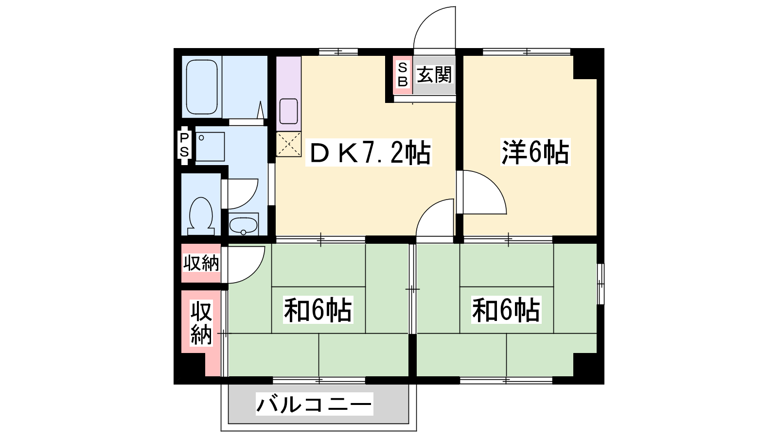 - DK7.2帖、洋室6帖、洋室6帖、洋室6帖