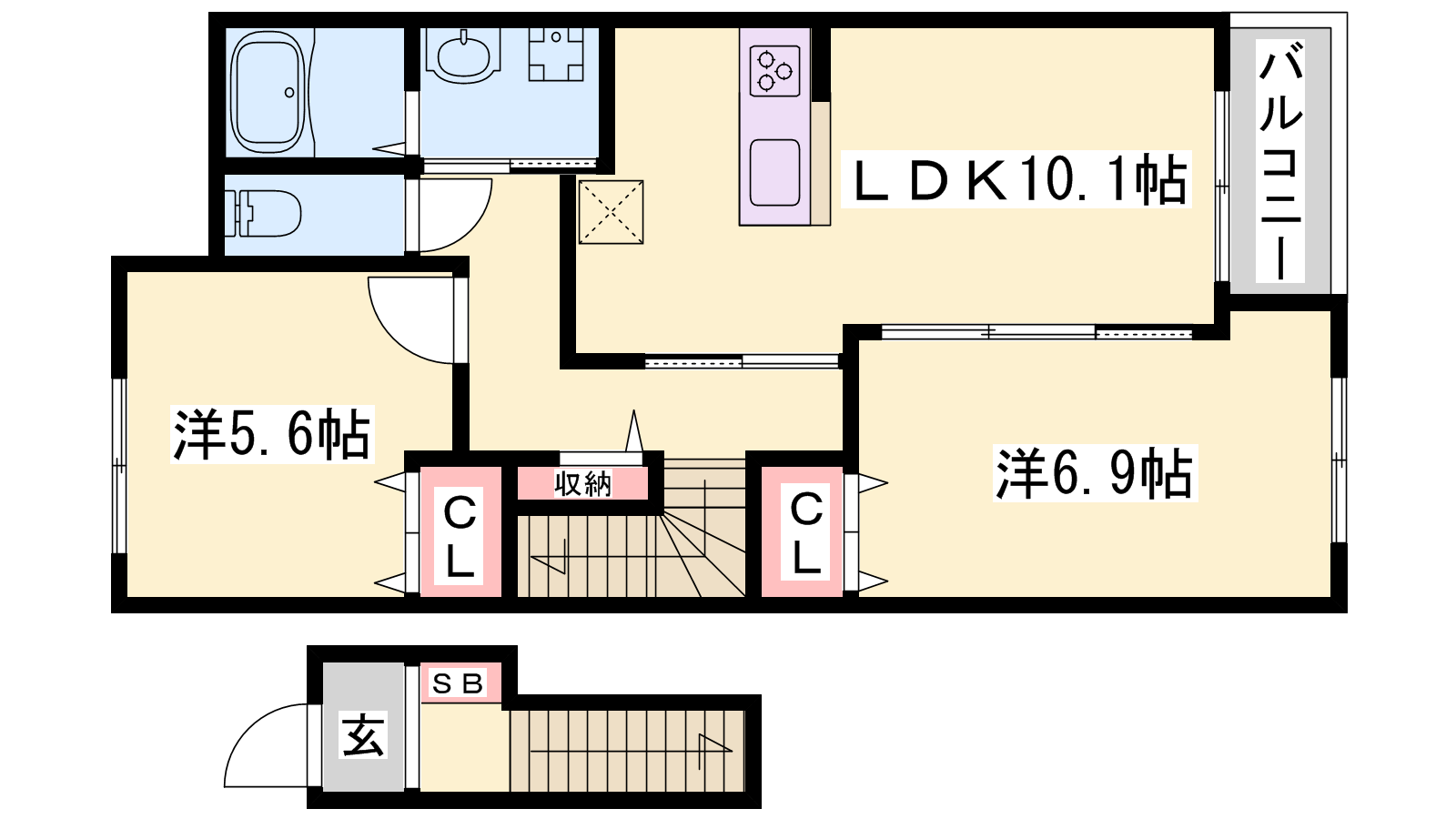 - LDK10.1帖、洋室6.9帖、洋室5.6帖
