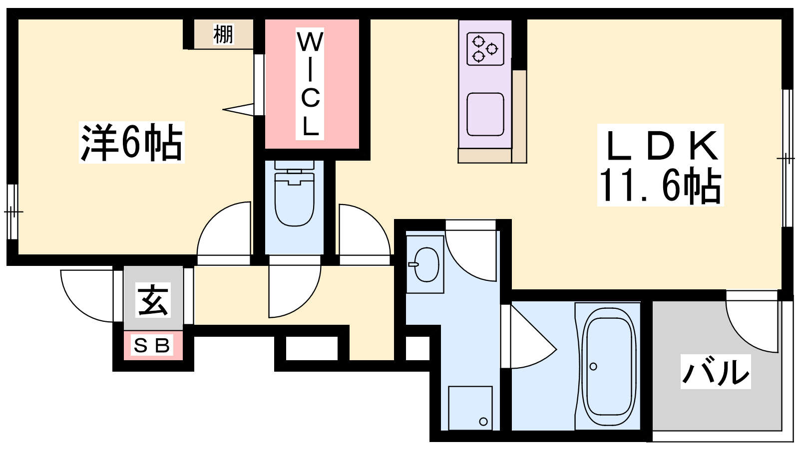 - LDK11.6帖、洋室6帖