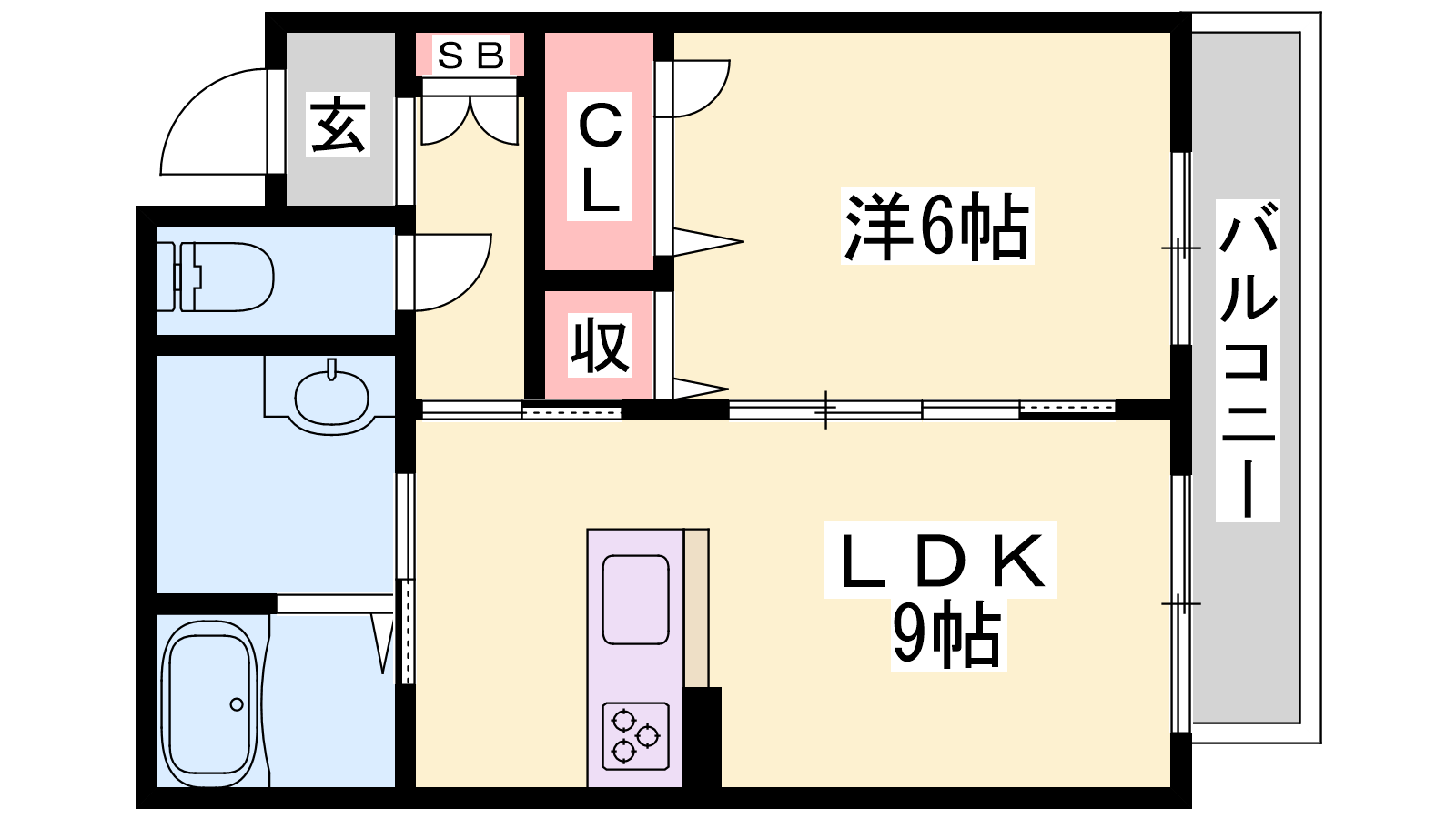 - LDK9.9帖、洋室6帖