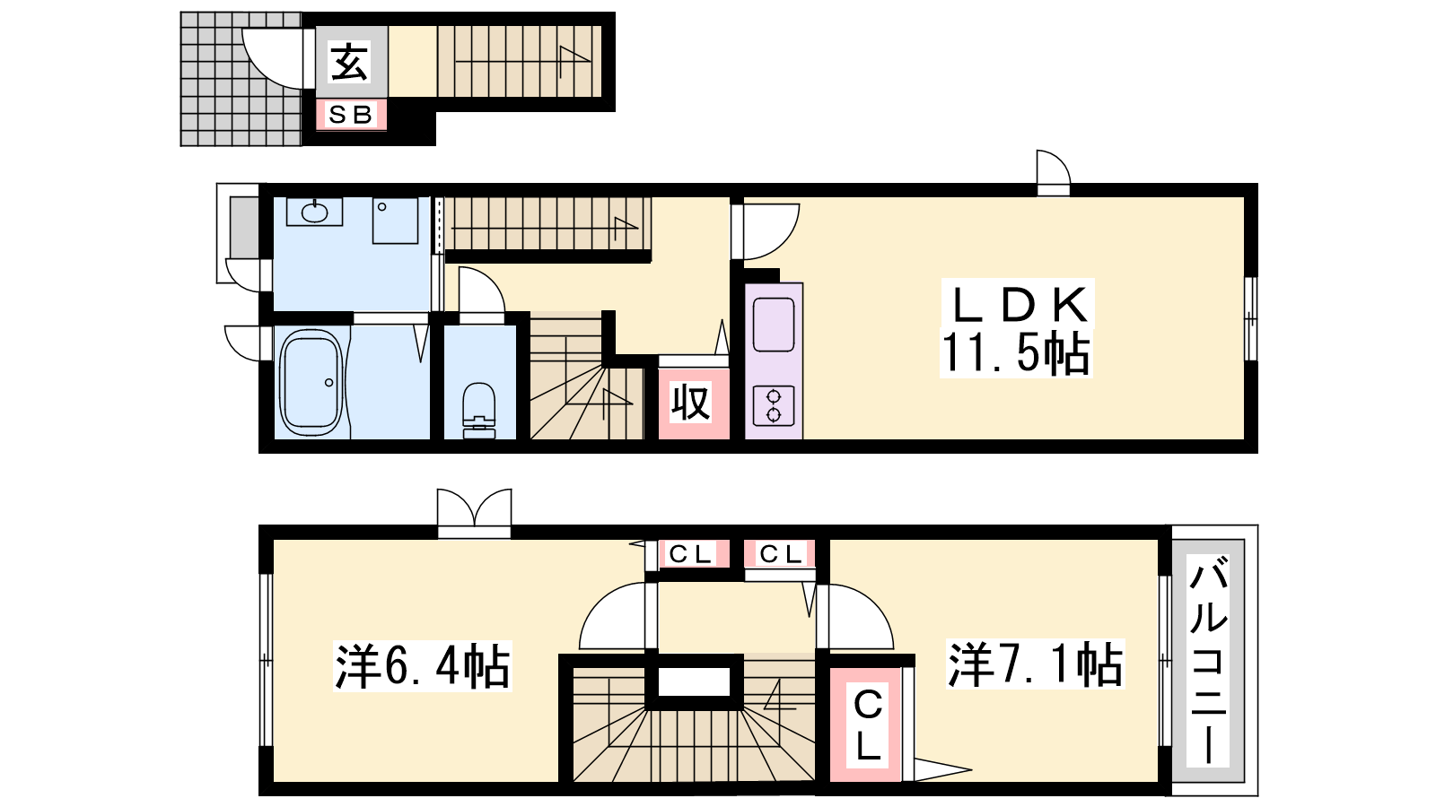- LDK11.5帖、洋室7.1帖、洋室6.4帖