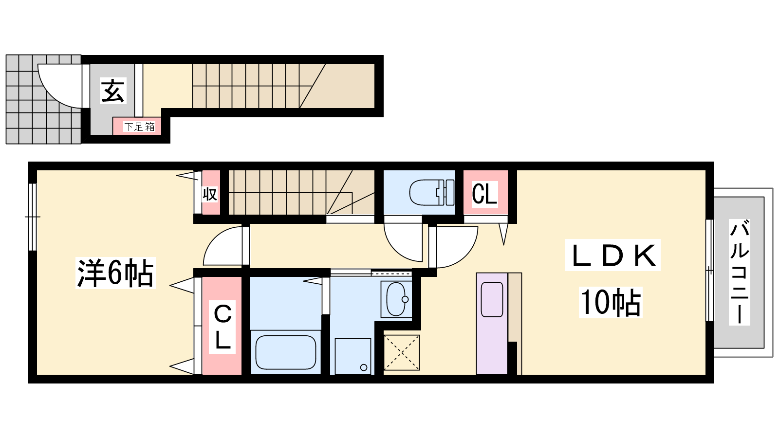 - LDK10帖、洋室6帖