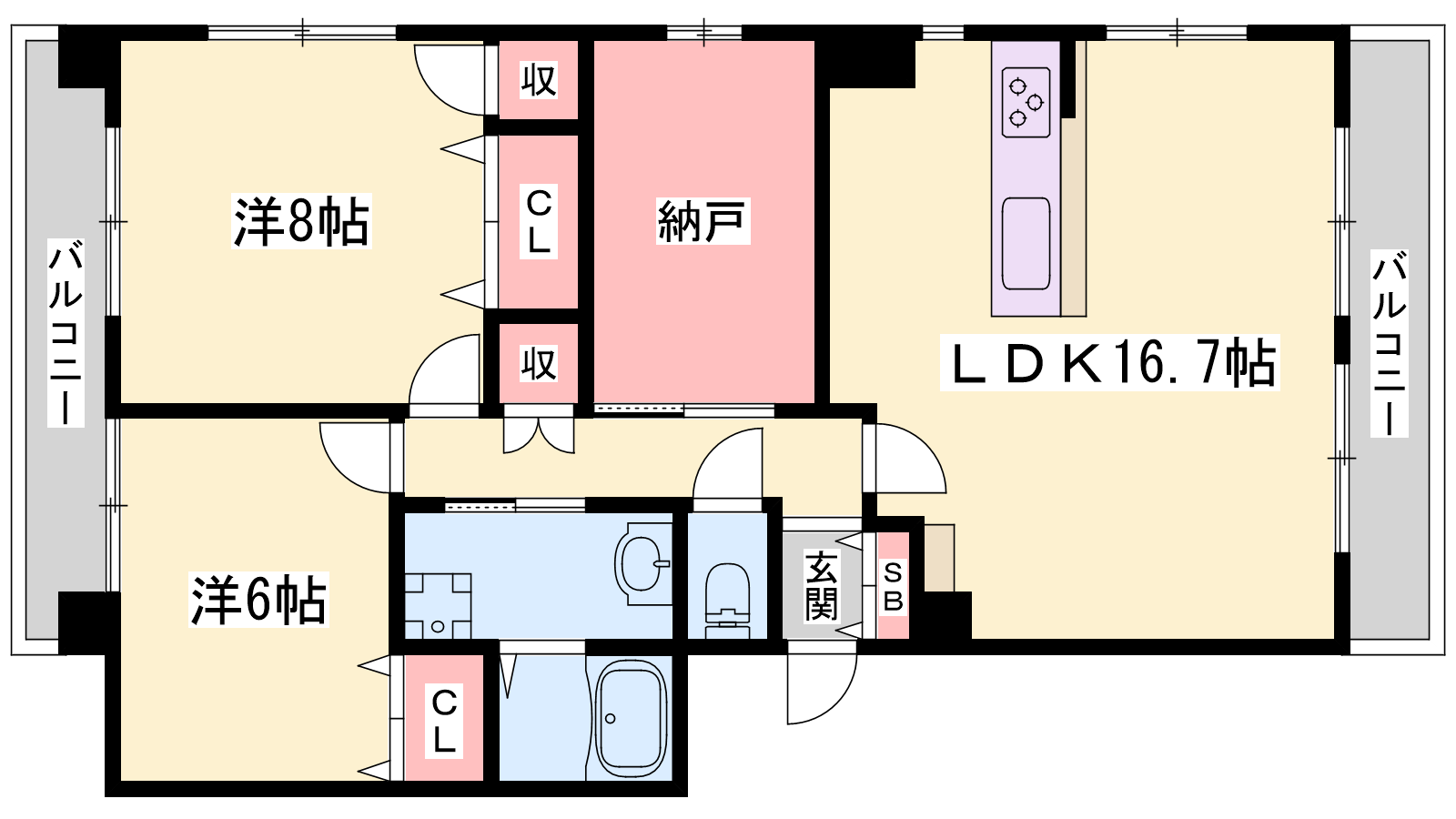 - LDK16.7帖、洋室8帖、洋室6帖、S5帖