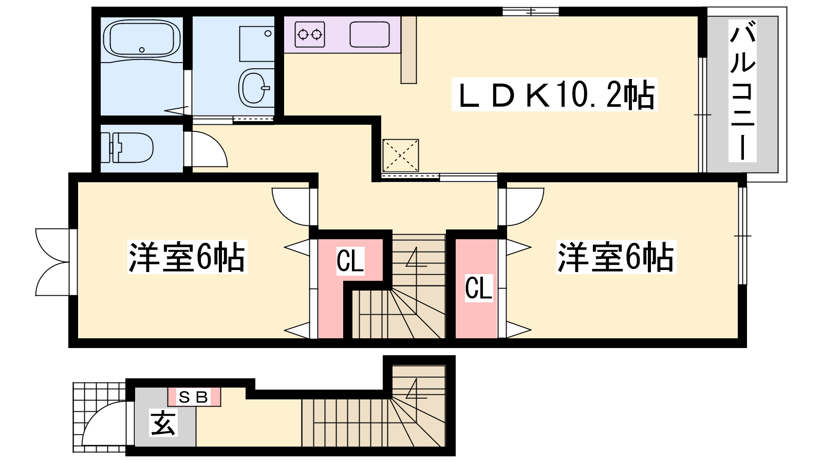- LDK10.2帖、洋室6帖、洋室6帖