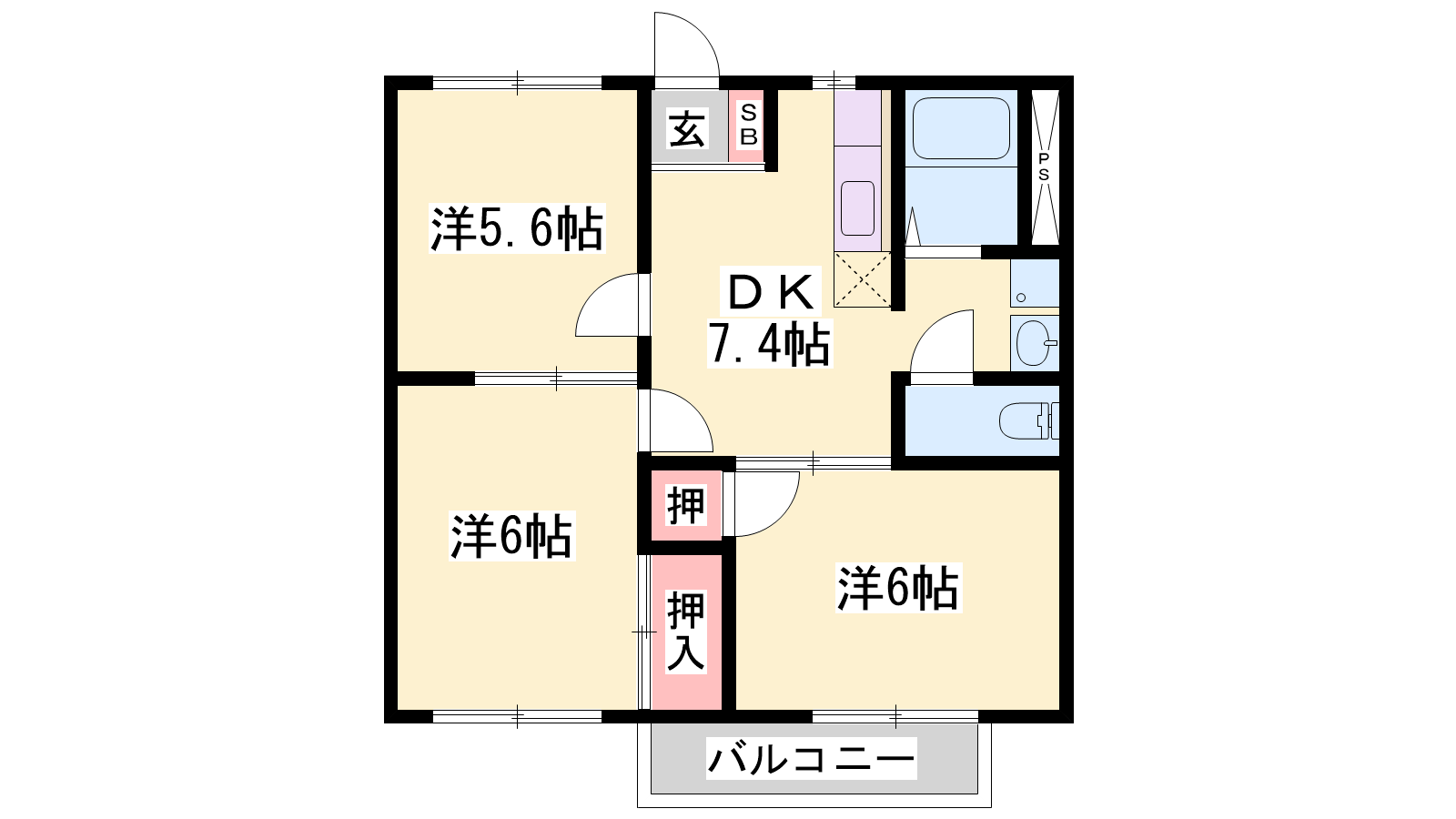 - DK7.4帖、洋室6帖、洋室6帖、洋室6帖