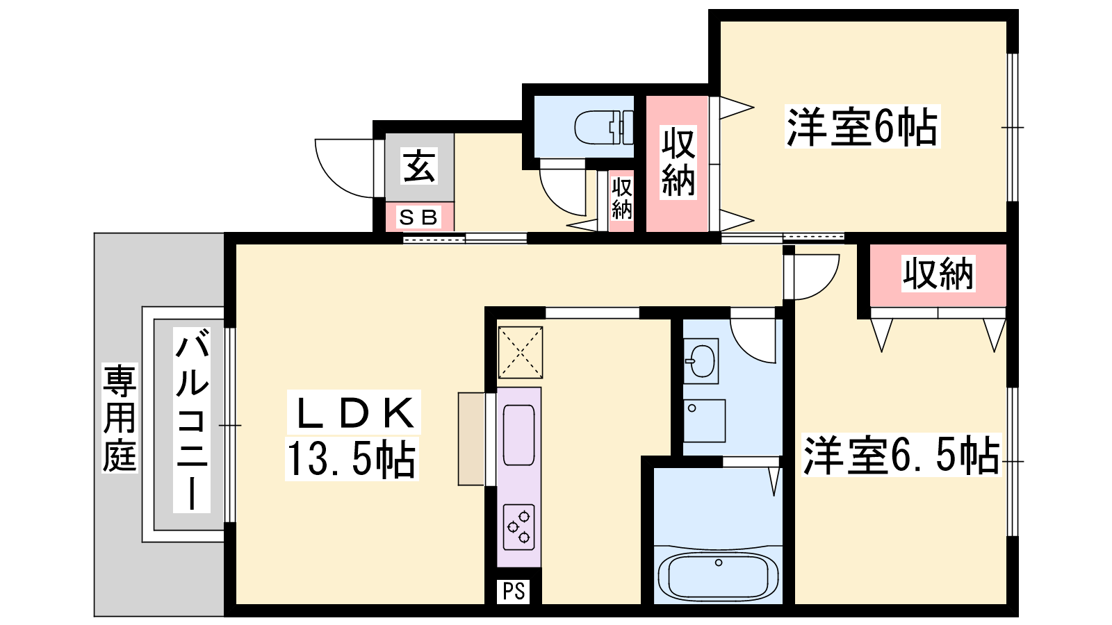 - LDK13.5帖、洋室6.5帖、洋室6帖