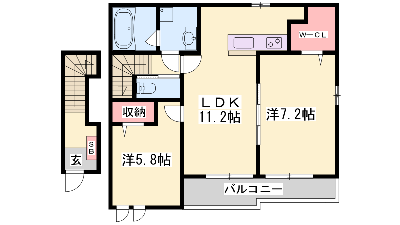 - LDK11.2帖、洋室7.2帖、洋室5.8帖