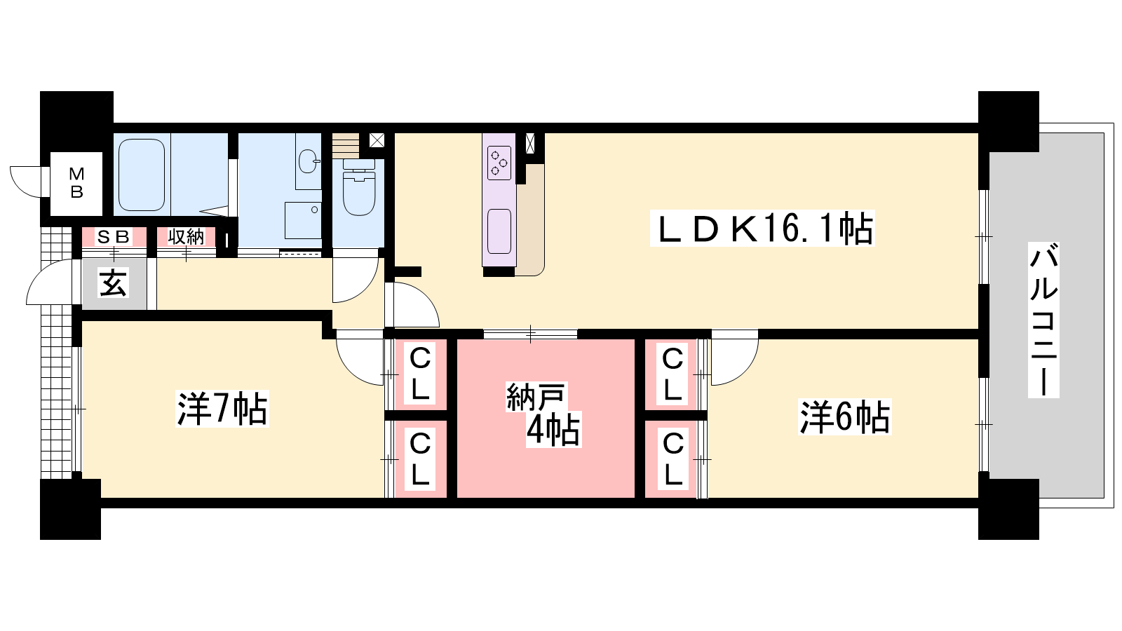 - LDK16.1帖、洋室7帖、洋室6帖、S4帖