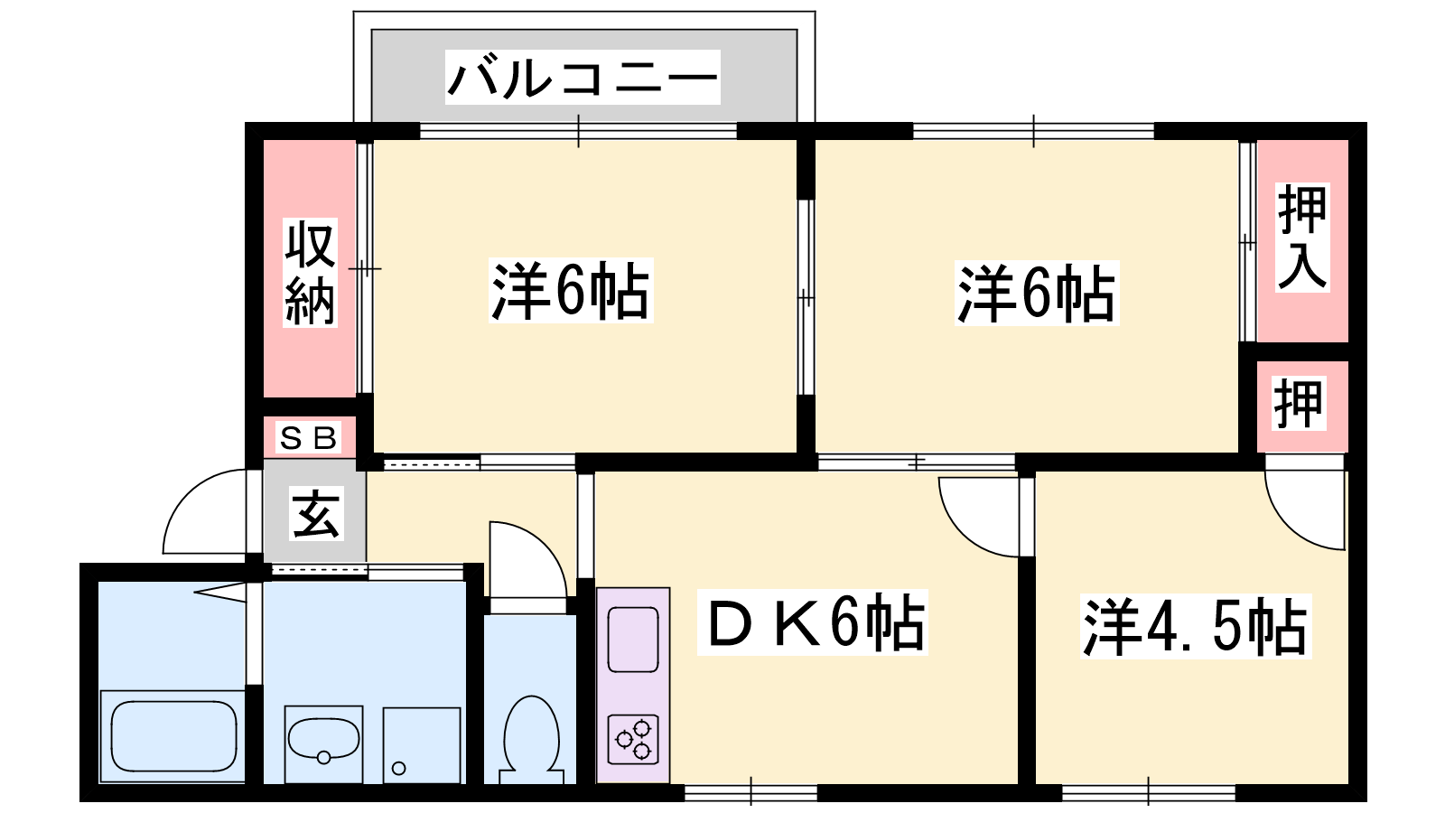 - DK6帖、洋室6帖、洋室6帖、洋室4.5帖