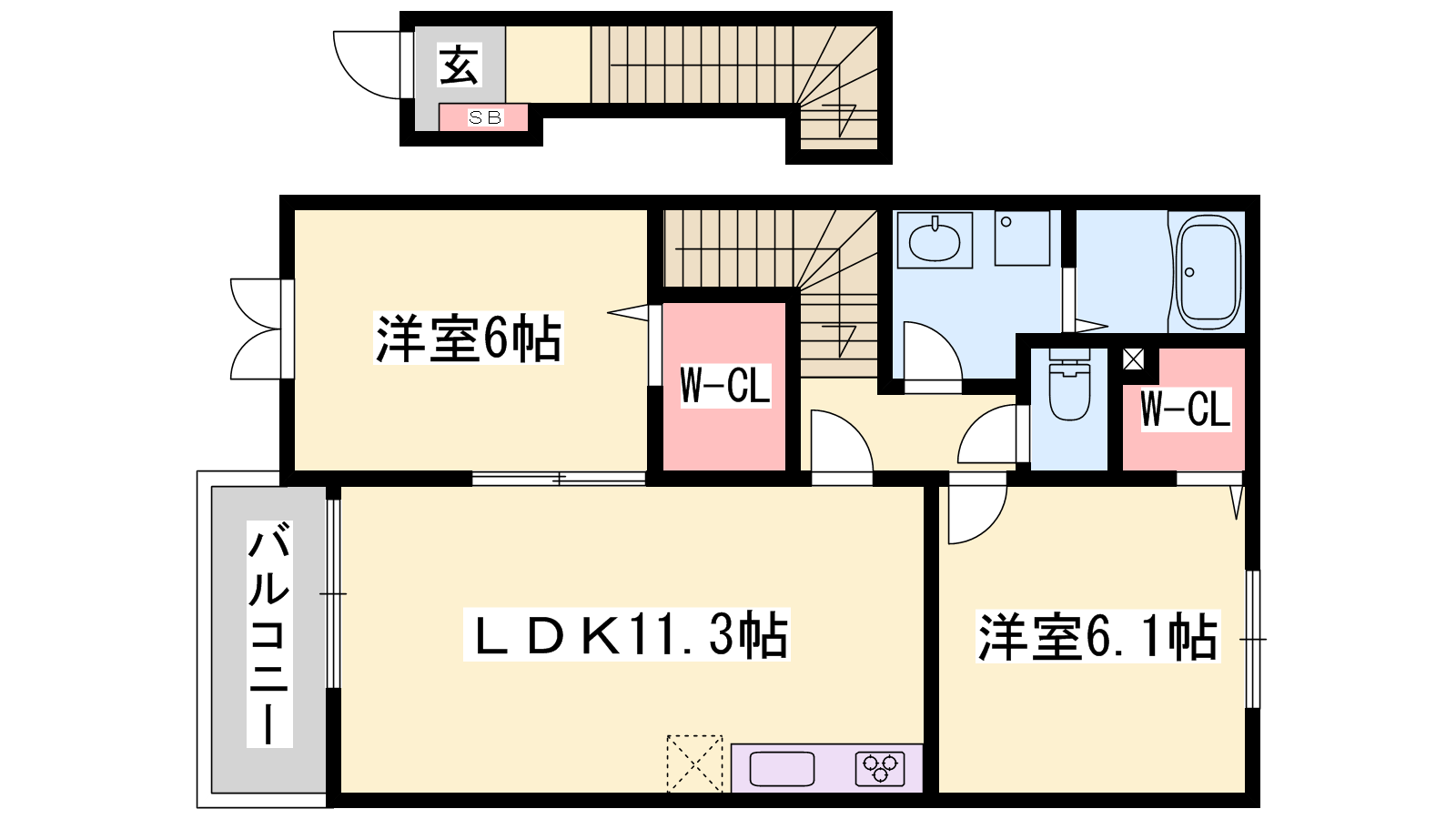 - LDK11.3帖、洋室6.1帖、洋室6帖