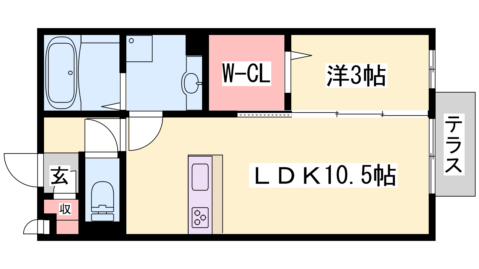 - LDK10.5帖、洋室3帖