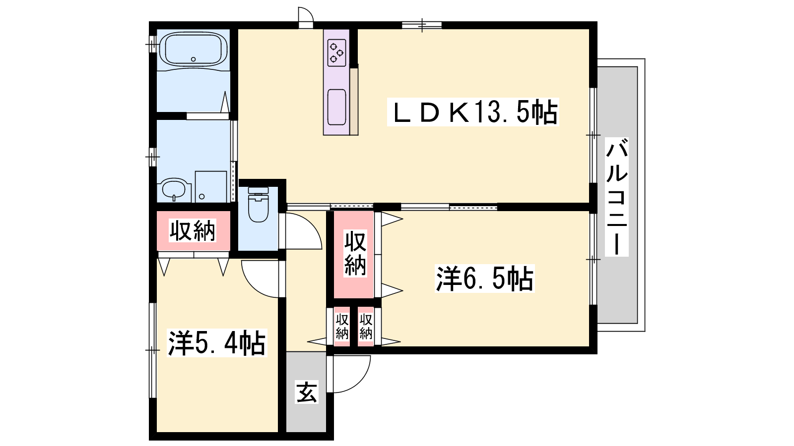 - LDK13.5帖、洋室6.5帖、洋室5.3帖