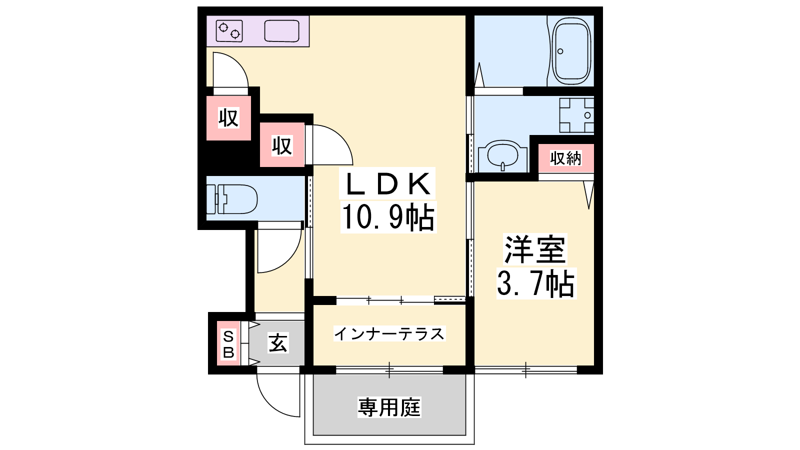 室内設備完備☆人気のインナーテラス物件!都市ガスで経済的です♪