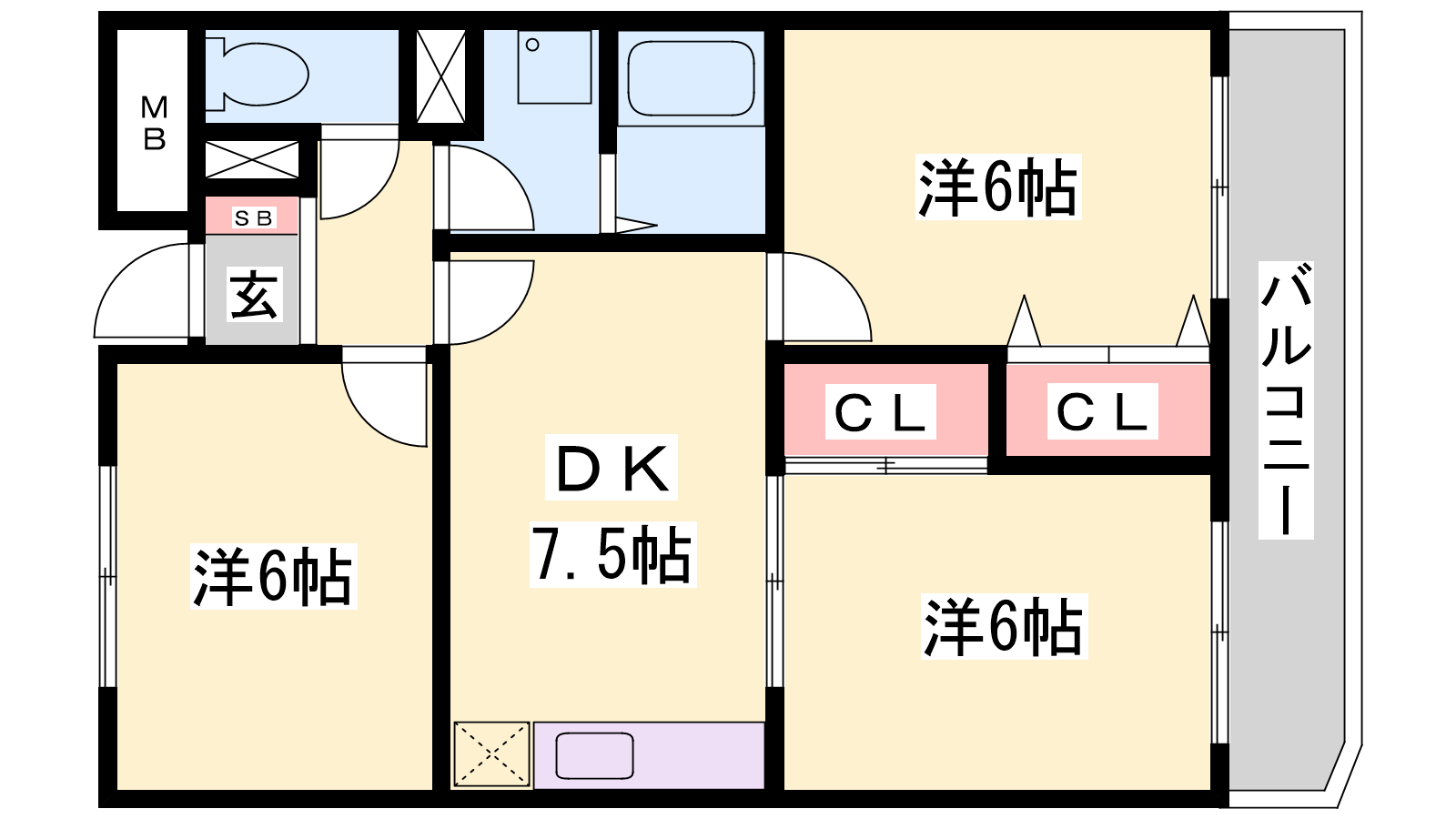 - DK7.5帖、洋室6帖、洋室6帖、洋室6帖