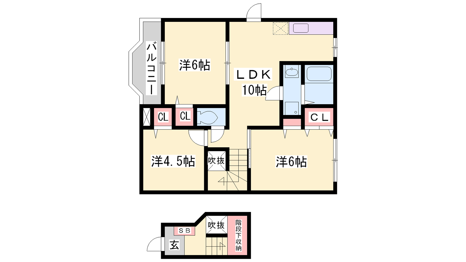 - LDK10帖、洋室6帖、洋室6帖、洋室4.5帖