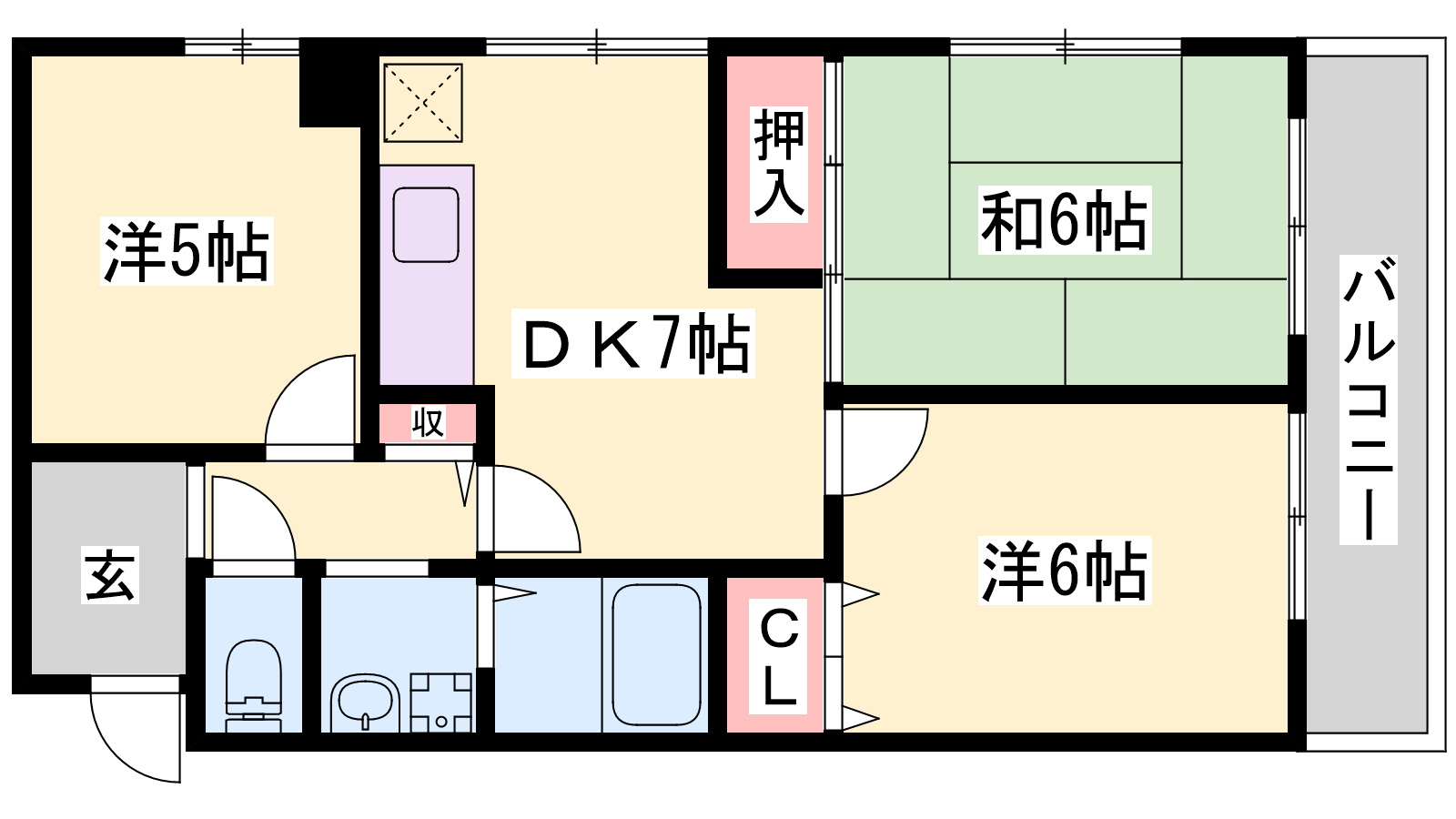 - DK7帖、洋室6帖、洋室5帖、和室6帖