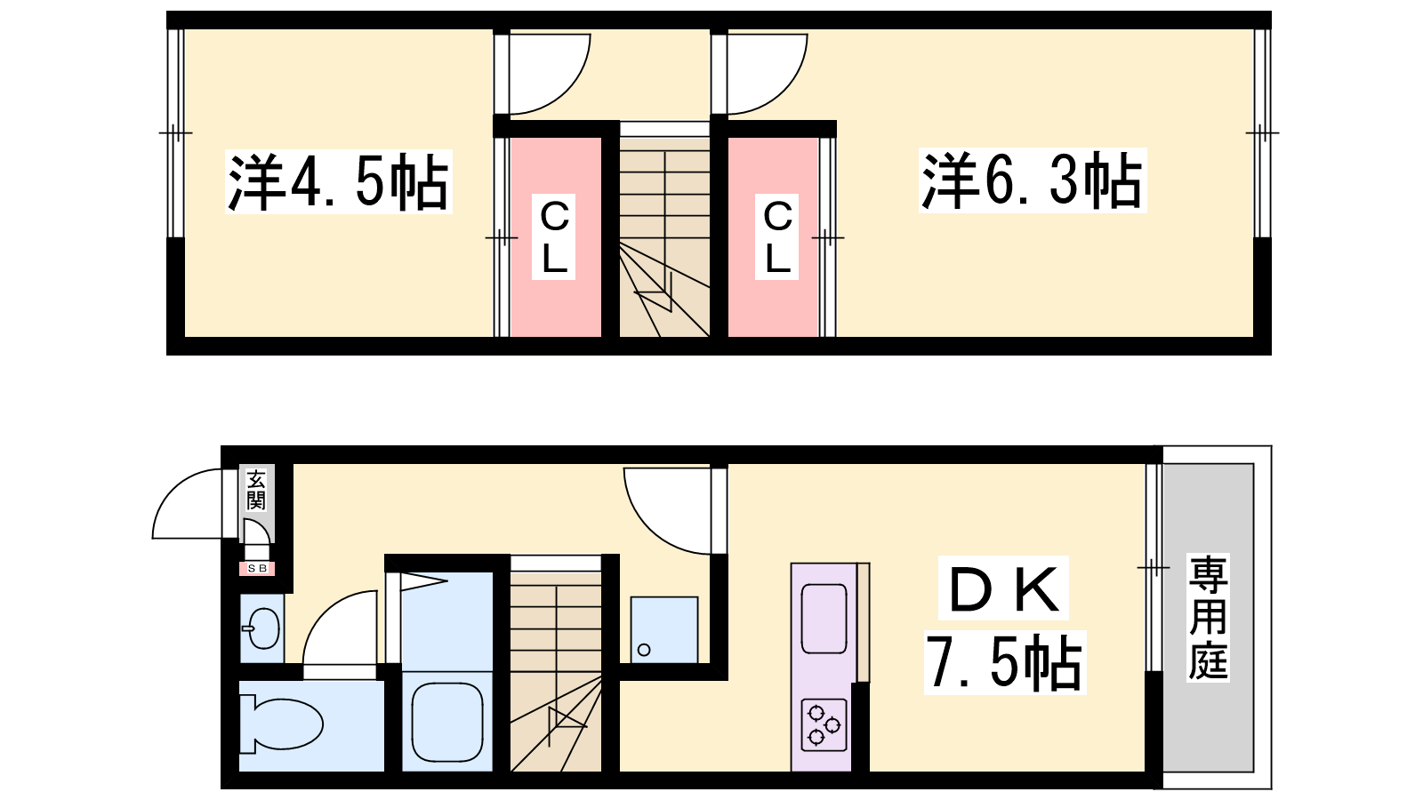 - DK7.5帖、洋室6.3帖、洋室4.5帖