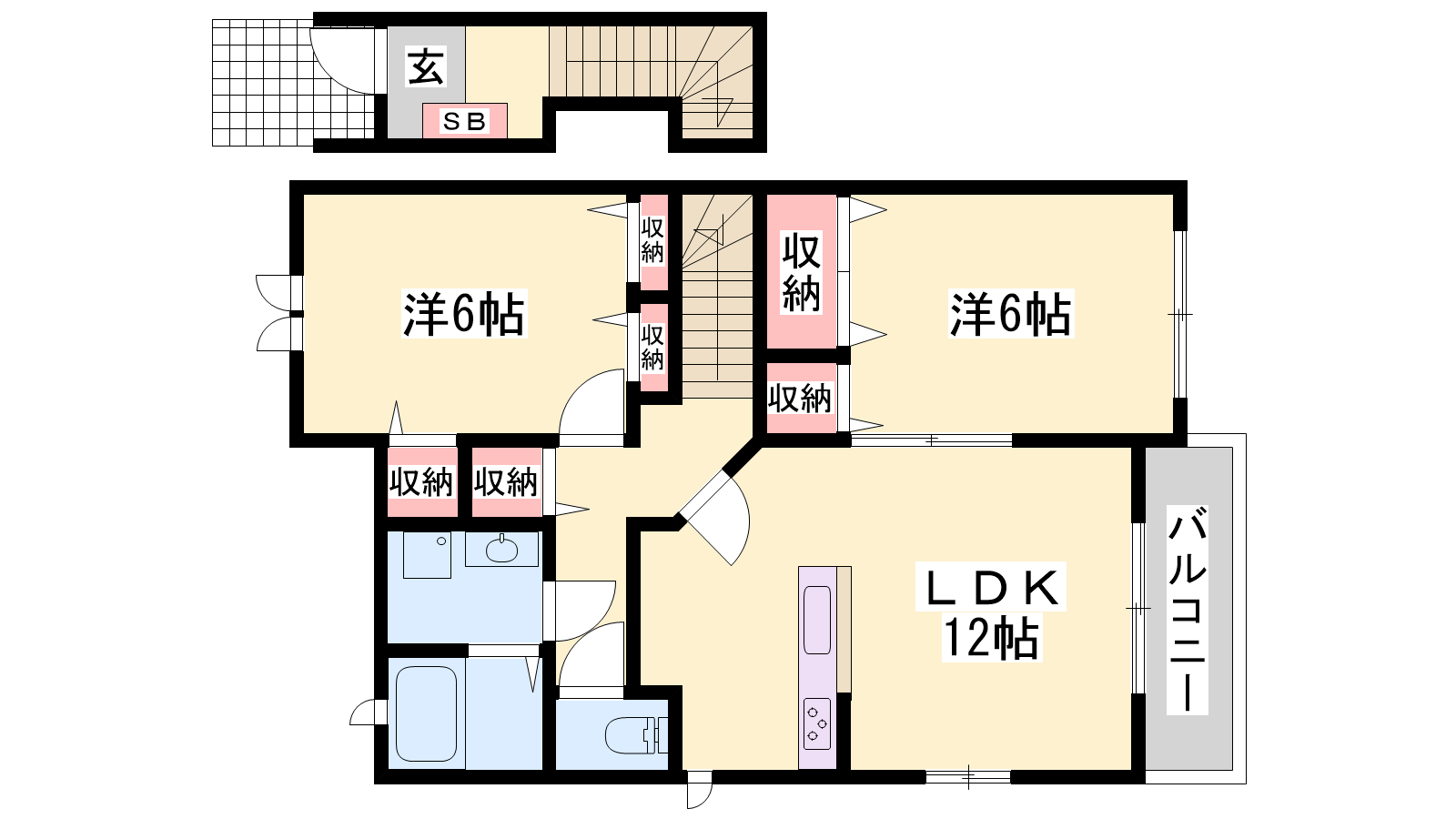 - LDK11.2帖、洋室6帖、洋室6帖