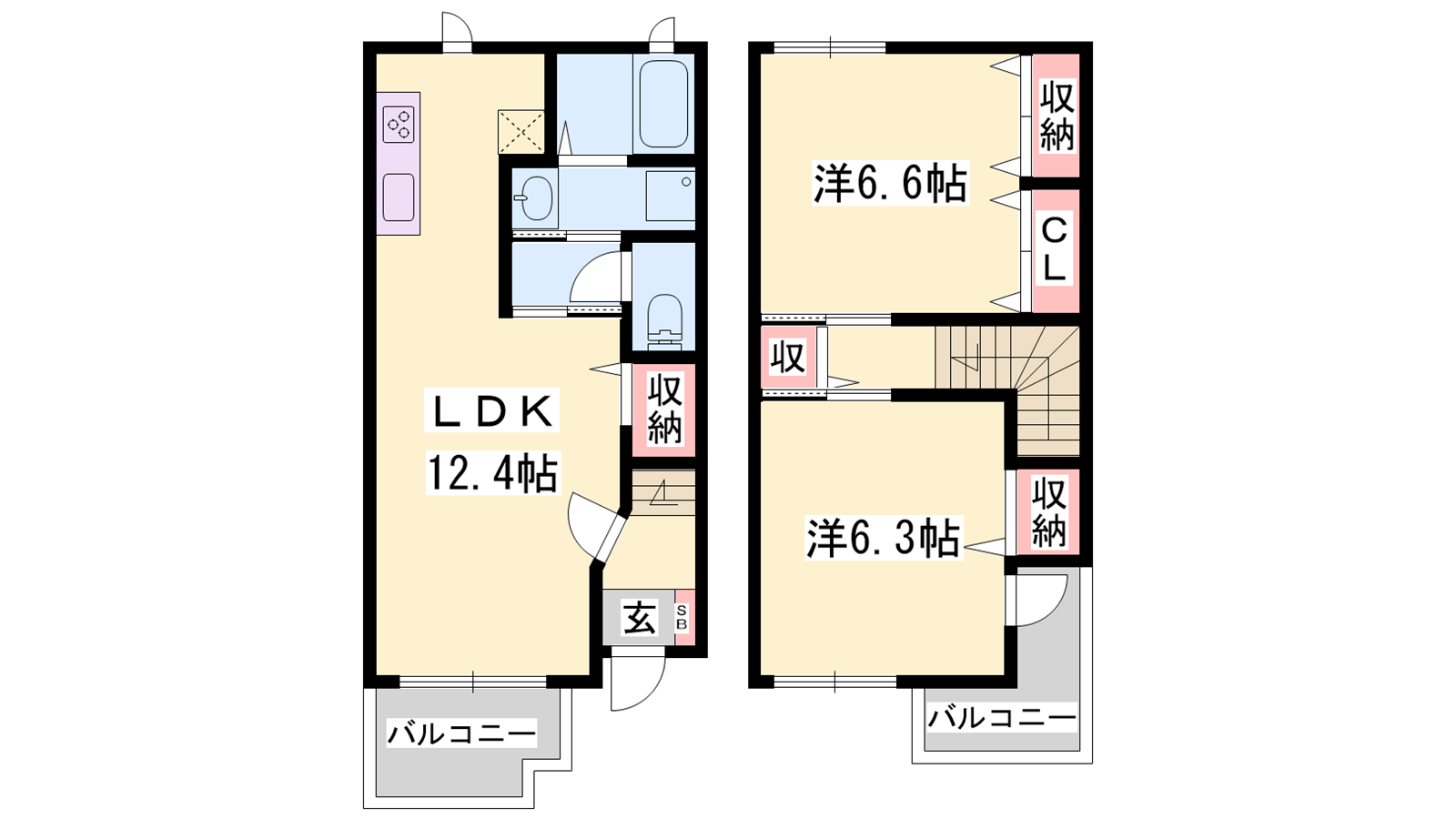 - LDK12.4帖、洋室6.6帖、洋室6.3帖