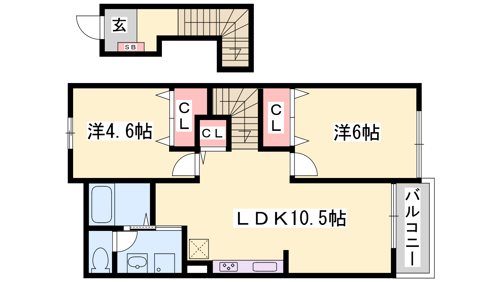 - LDK10.5帖、洋室6帖、洋室4.6帖