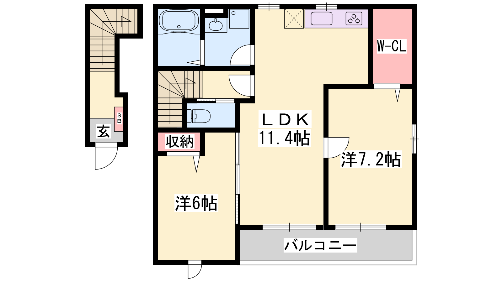 - LDK11.4帖、洋室7.2帖、洋室6帖