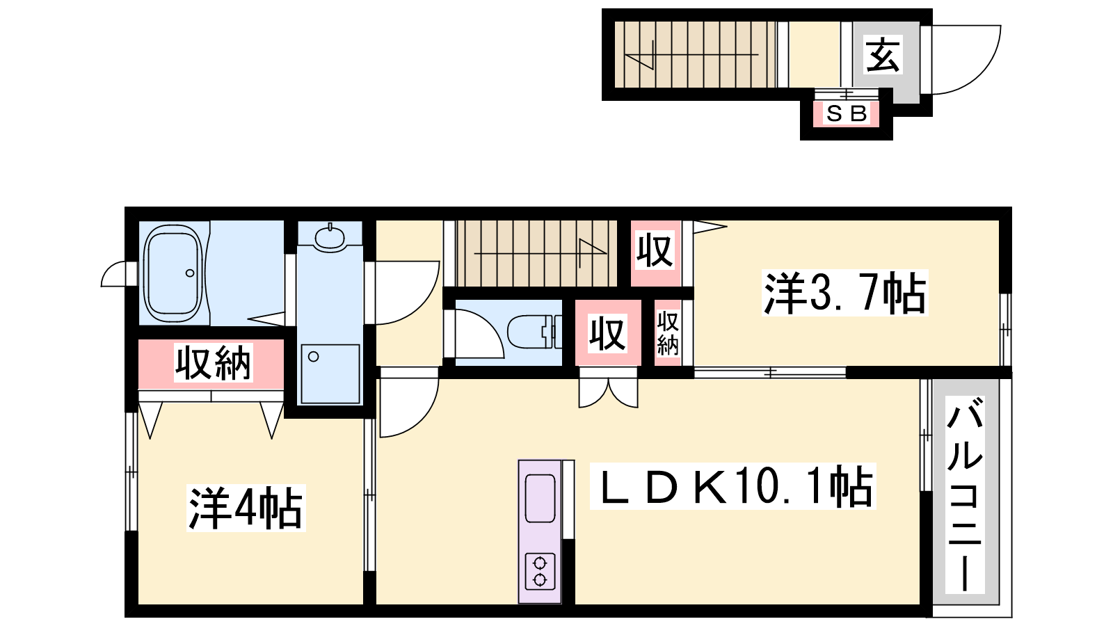 - LDK10.1帖、洋室4帖、洋室3.7帖