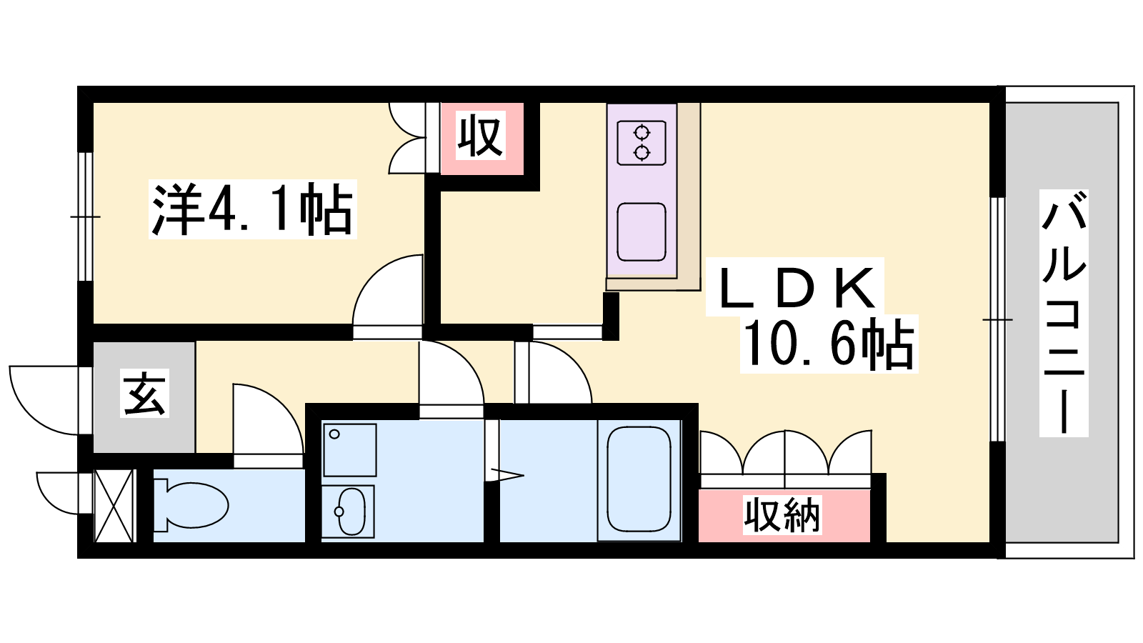 - LDK10.6帖、洋室4.1帖