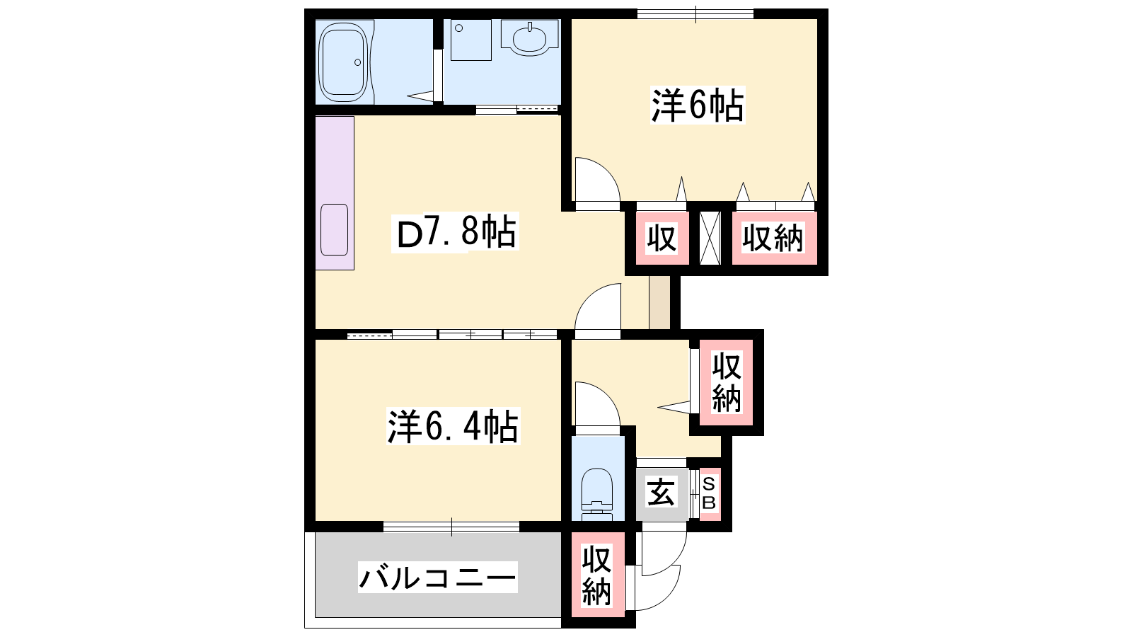 - DK7.8帖、洋室6帖、洋室6.4帖