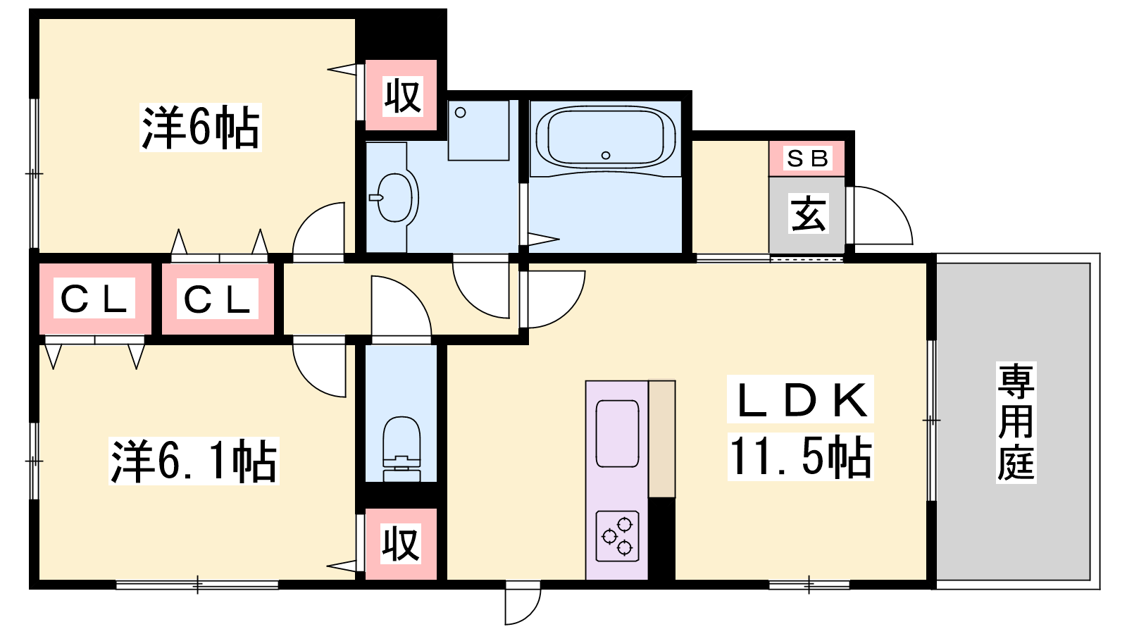 - LDK11.5帖、洋室6.1帖、洋室6帖