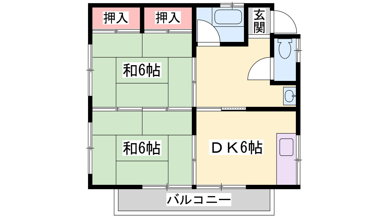- DK6帖、和室6帖、和室6帖