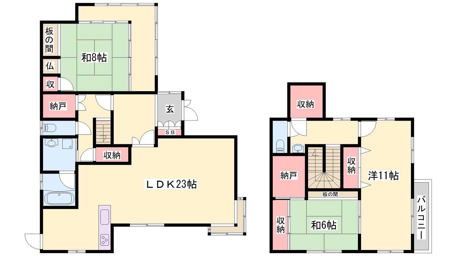 - LDK23帖、洋室11帖、和室8帖、和室6帖