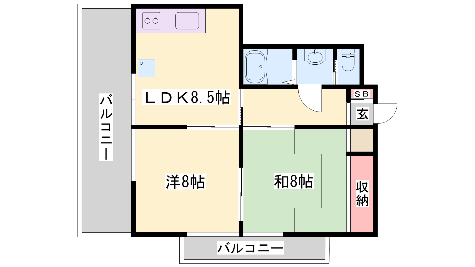 - LDK8.5帖、洋室8帖、和室8帖