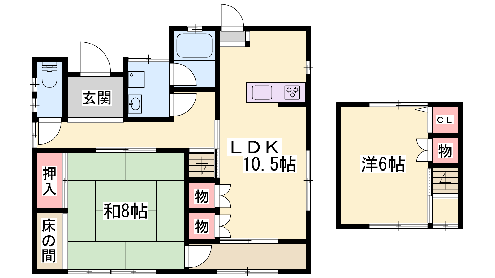 - LDK10.5帖、洋室6帖、和室8帖