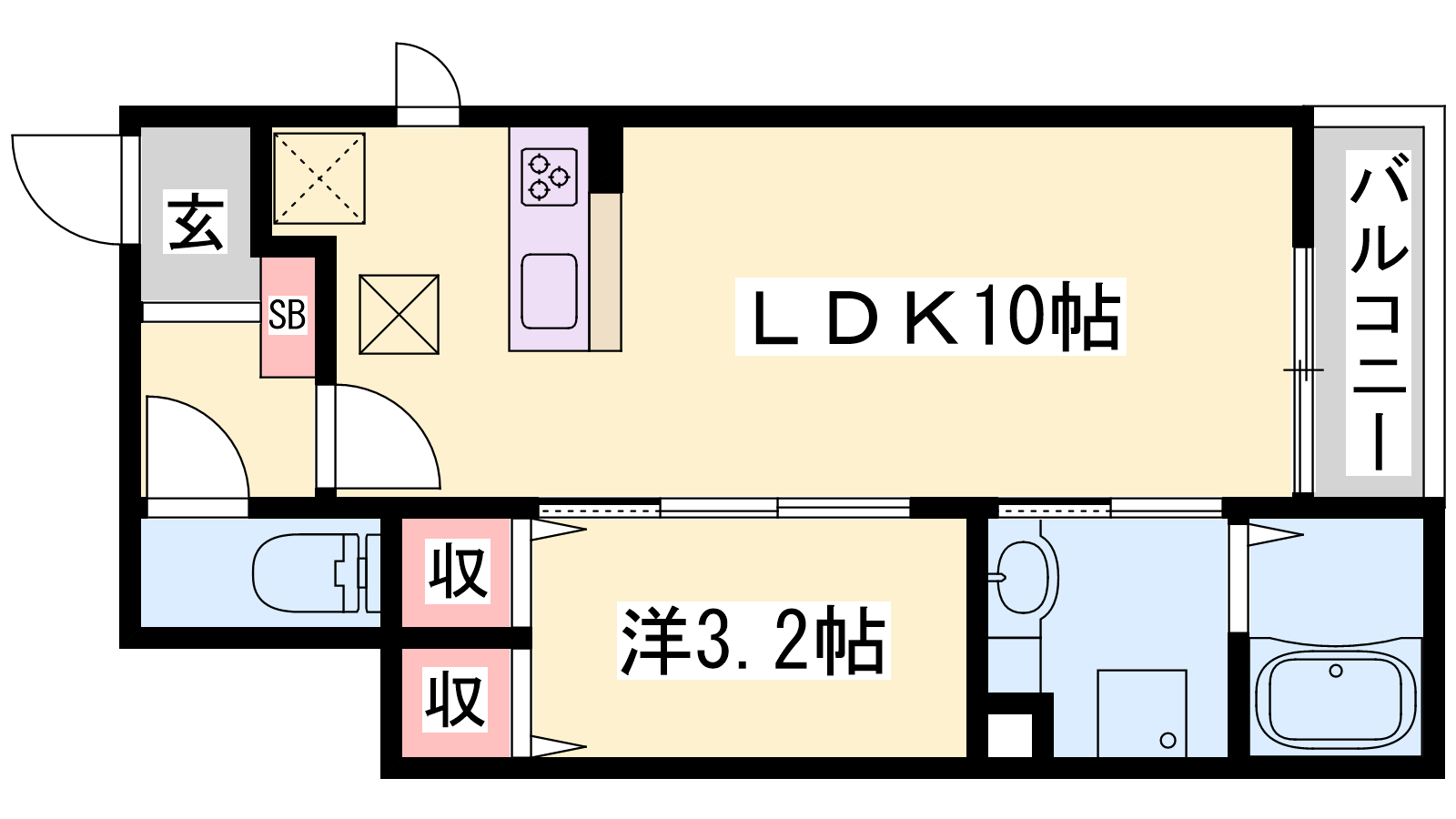 - LDK10帖、洋室3.2帖