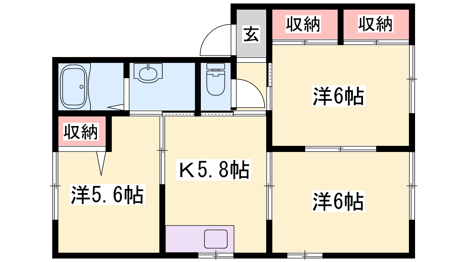 - K5.8帖、洋室6帖、洋室6帖、洋室5.6帖