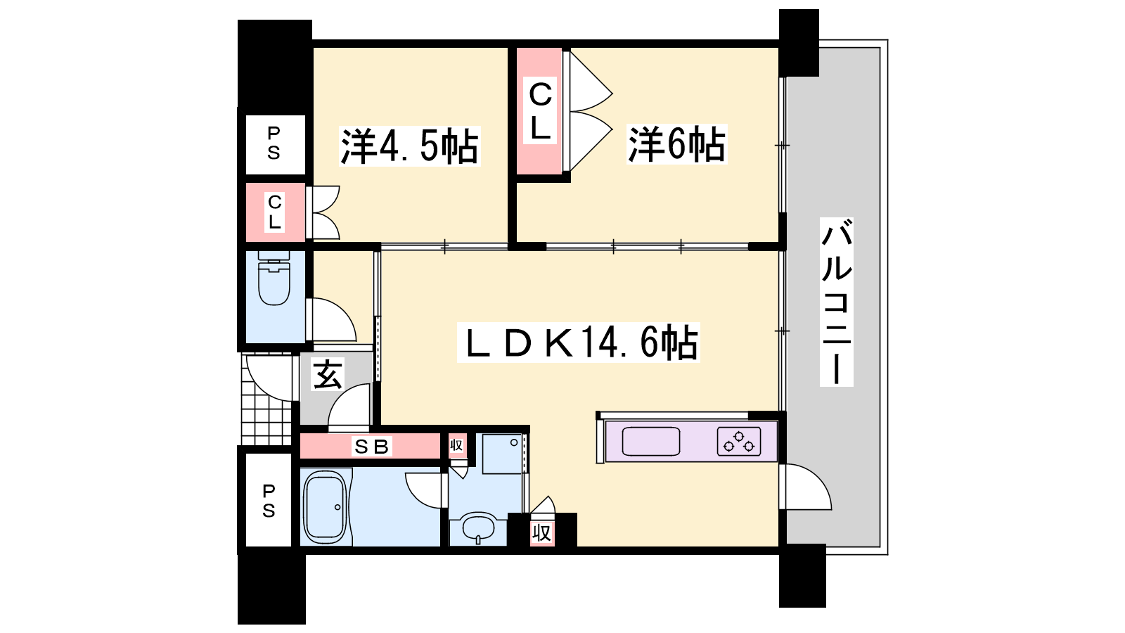 - LDK14.6帖、洋室6帖、洋室4.5帖