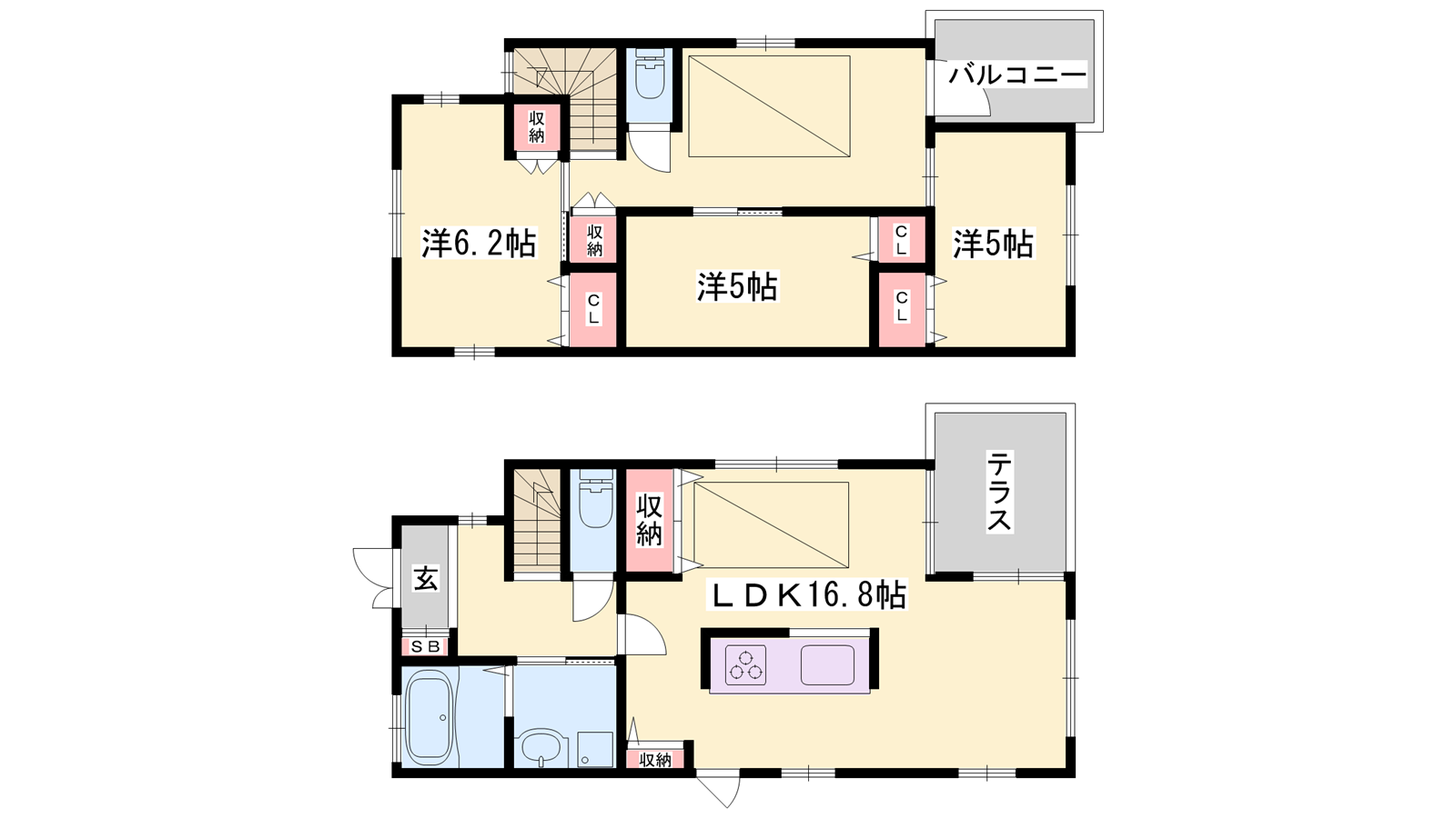 - LDK16.8帖、洋室6.25帖、洋室5帖、洋室5帖