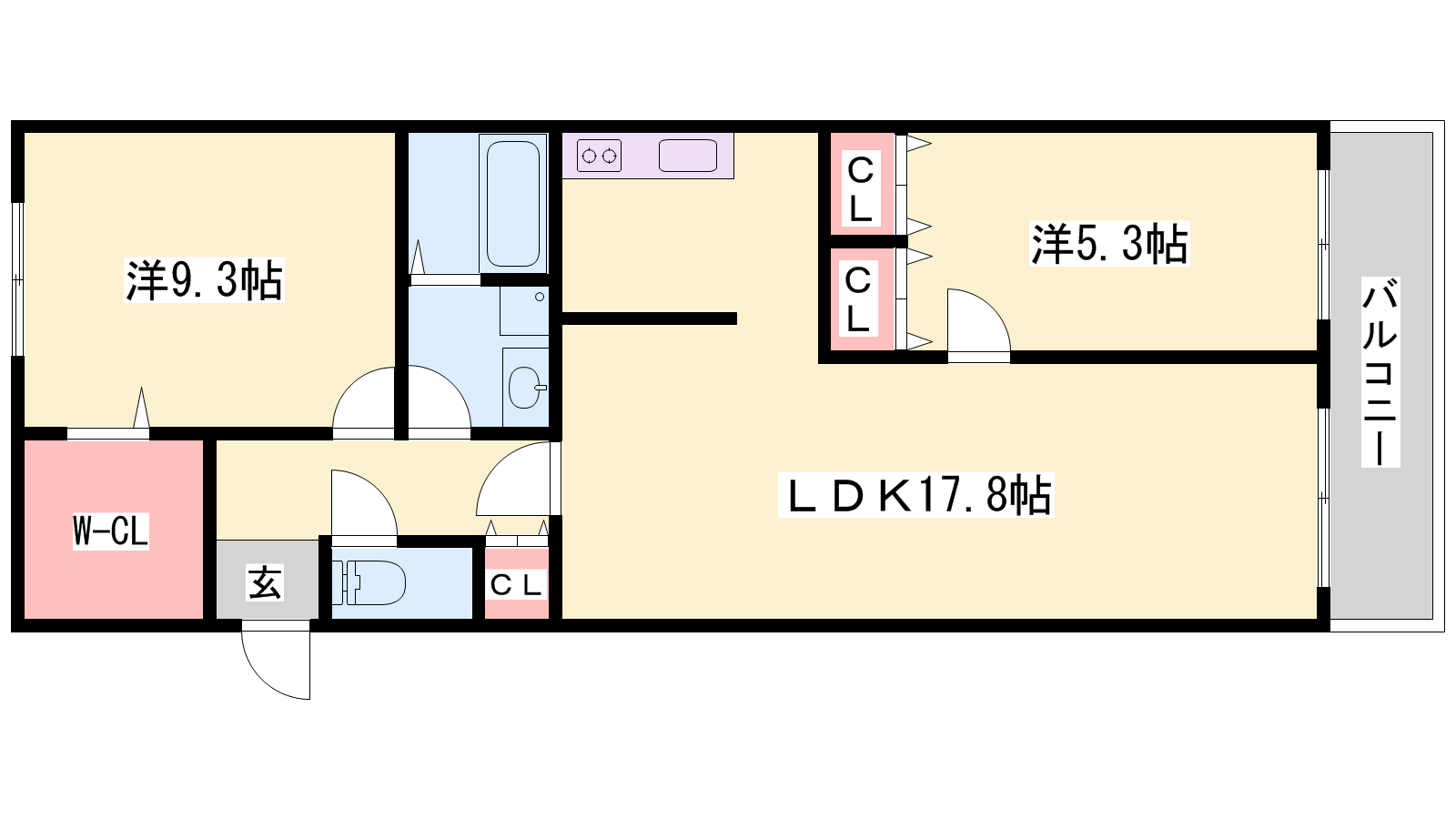 - LDK17.8帖、洋室9.3帖、洋室5.3帖