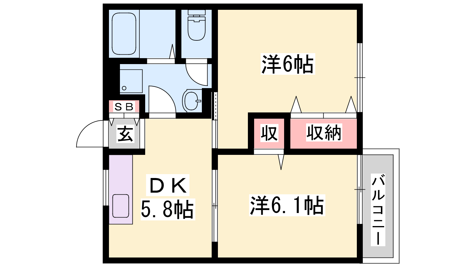 - DK5.8帖、洋室6.1帖、洋室6帖