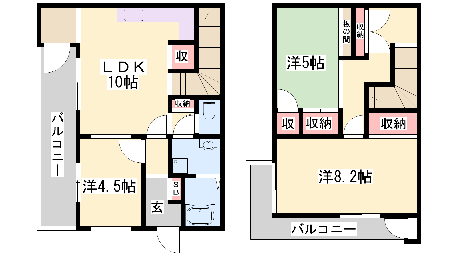 - LDK10帖、洋室8.2帖、洋室4.5帖、和室5帖
