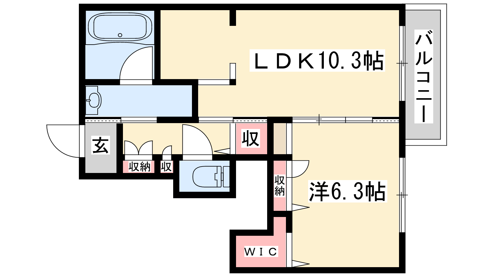 - LDK10.3帖、洋室6.3帖