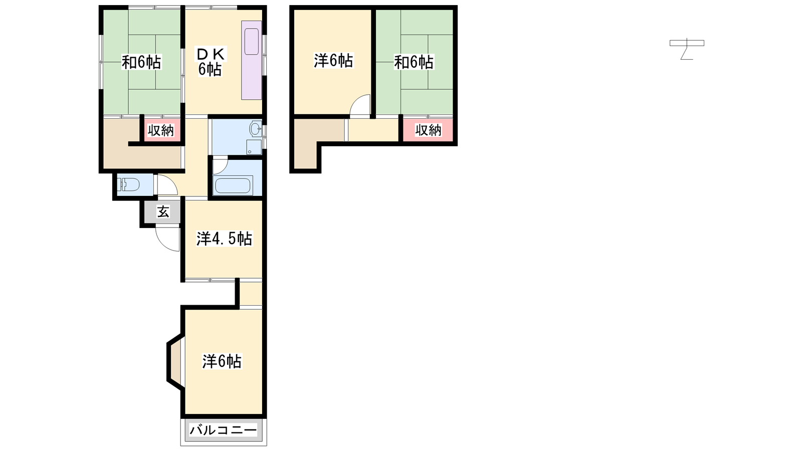 - DK6帖、洋室6帖、洋室6帖、和室6帖、和室6帖、洋室4.5帖