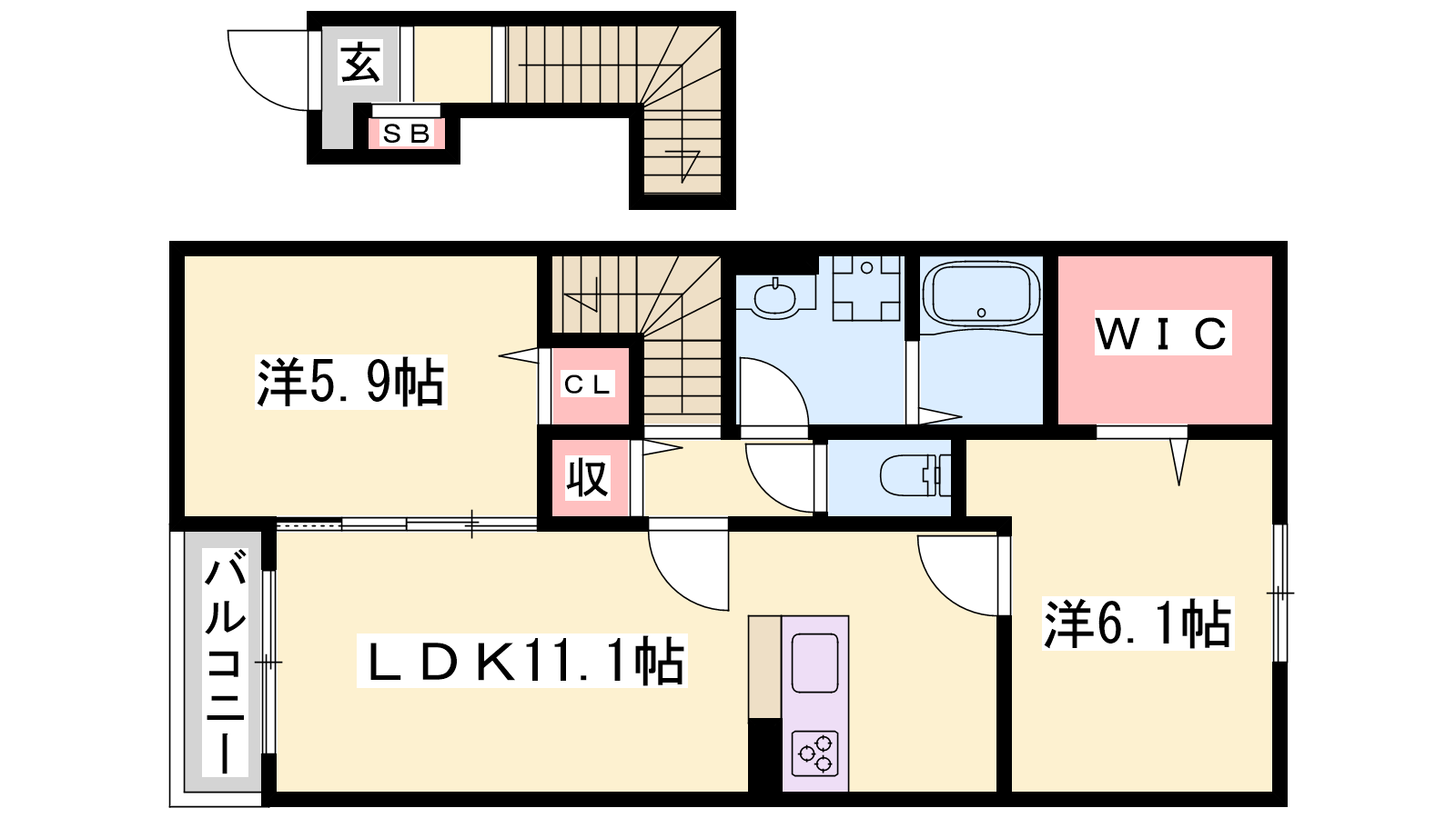 - LDK11.1帖、洋室6.1帖、洋室5.9帖