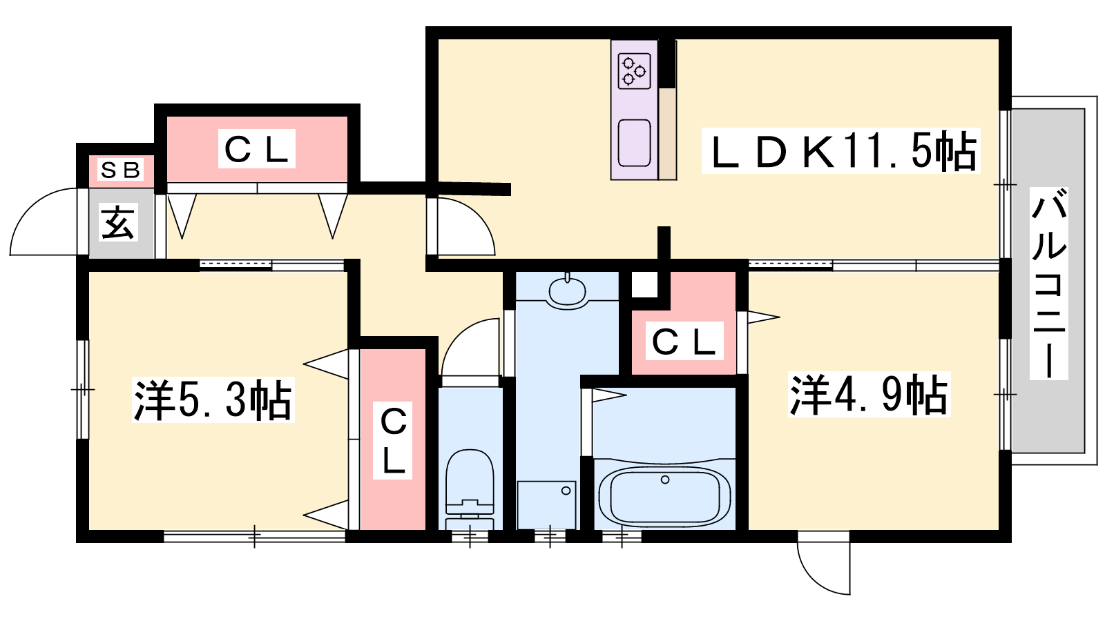 - LDK11.5帖、洋室5.3帖、洋室4.9帖